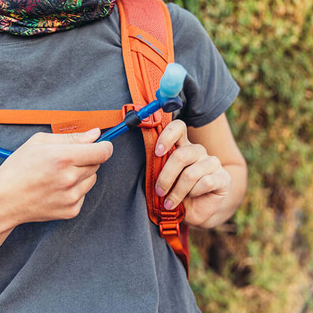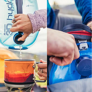 Gebruiksgemak staat centraal bij de 3D Hydro Trek. De grote vulopening is voorzien van een stevig handvat, waardoor je de zak makkelijk onder een kraan of in een beek kunt vullen. Het SpeedClip-bevestigingssysteem zorgt ervoor dat je de zak met één hand in compatibele Gregory-rugzakken klikt. Ook aan de details is gedacht: het magnetische bijtventiel klikt vast aan je borstband zodat de slang niet rondzwaait tijdens het lopen. Het gebruikte materiaal is niet alleen robuust, maar ook smaakneutraal, zodat je water altijd fris blijft smaken.