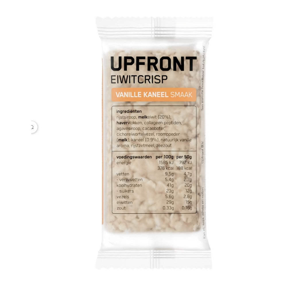 Bij UPFRONT draait alles om transparantie. Geen kleine lettertjes of verborgen chemische toevoegingen; de ingrediëntenlijst staat letterlijk groot op de voorkant van de verpakking. Je ziet direct wat je eet.